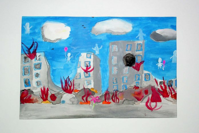The artworks emerged from a drawing competition that engaged children from internally displaced communities of the Cherkasy region. The competition was an opportunity for many boys and girls who were forced to leave their relatives and friends, who lost their homes, who were uprooted from their usual life by the war, and who probably experienced tragic losses, to share their pain by telling their stories. The competition was both therapy and creative activity at the same time. The children drew Ukraine — the way it is today and the way the children dream of it.